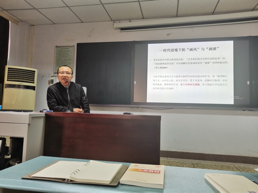 3月20日下午,在新艺术楼三楼多媒体教室,必赢bwin官方网站经理席卫权为全体入党积极分子做“不负厚土与时代——中原画风解读”专题讲座。