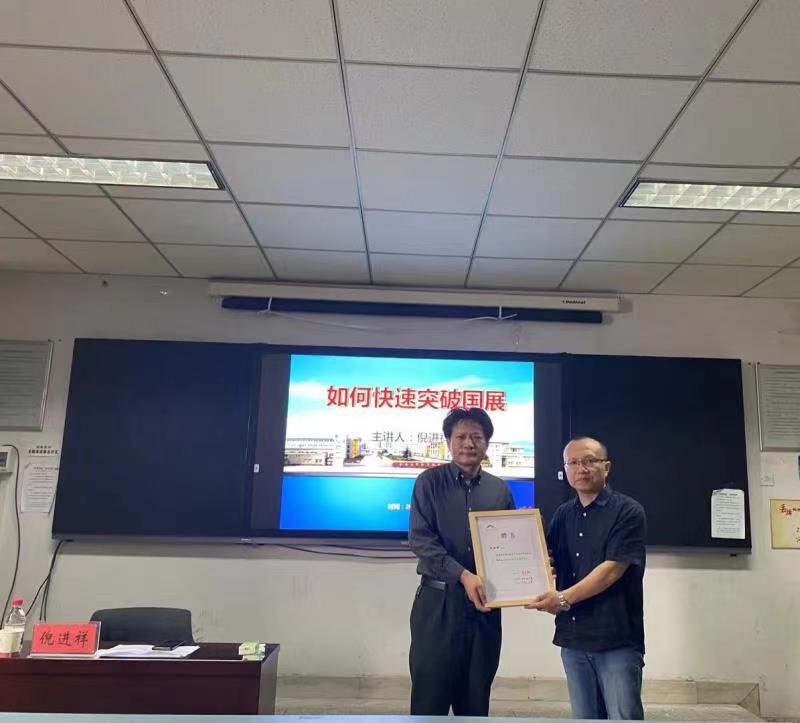 席经理在欢迎辞中,高度赞扬倪教授书法创作水平的同时,强调本次讲座将直面同学们对“如何入选书界重要赛事”的疑问,希望同学们能认真做好笔记反复思考,切实做到学有所用,打造更高质量的作品,努力在各级书届赛事上获得佳绩,为必赢bwin官方网站增光添彩。随后,席经理为倪进祥教授颁发必赢bwin官方网站客座教授聘书。