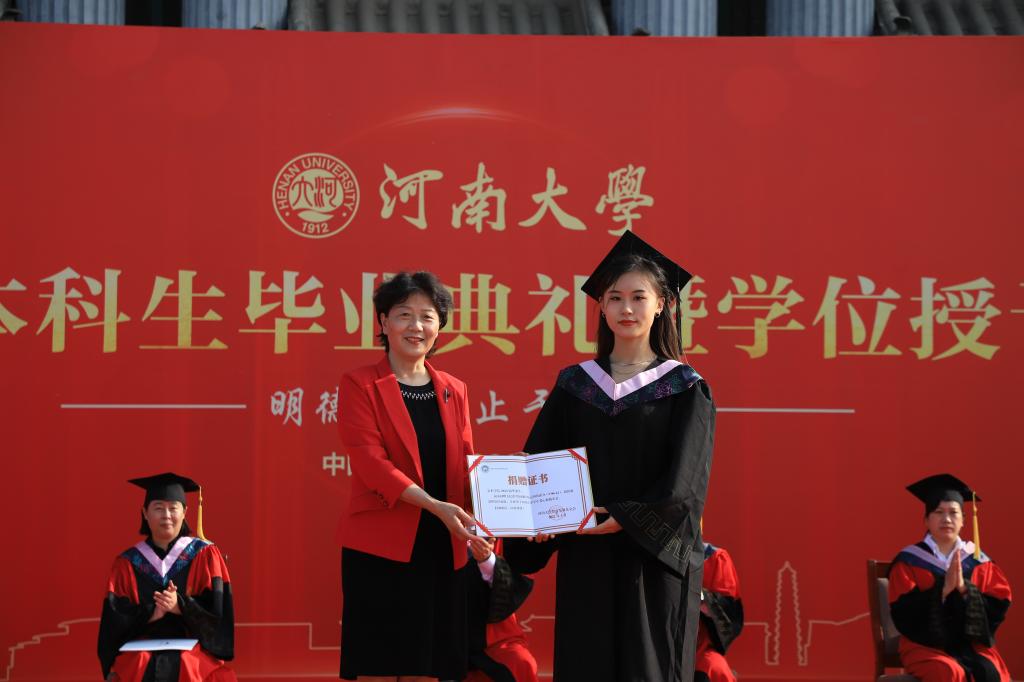 刘波向2022届全体本科毕业生颁发“捐赠证书”