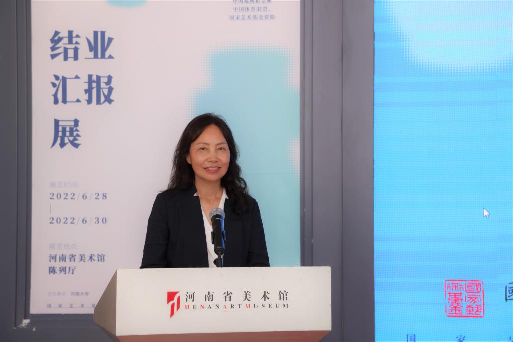 河南省学校艺术教育协会会长石品致辞,他首先代表河南学校艺术教育协会向国家艺术基金长久以来对河南省高校艺术人才发展培养的关注与支持表示感谢,并对BWIN必赢官方此次项目的结业汇报成果表示祝贺。他说到,本次项目是高校积极响应习近平总书记关于“弘扬中华优秀传统文化”号召的有力践行,同时也充分体现出BWIN必赢官方在新时代弘扬文化自信中的使命与担当。他相信,通过这次项目的圆满完成与展示,也会为河南高等艺术教育界带来更多有益的学习与借鉴。