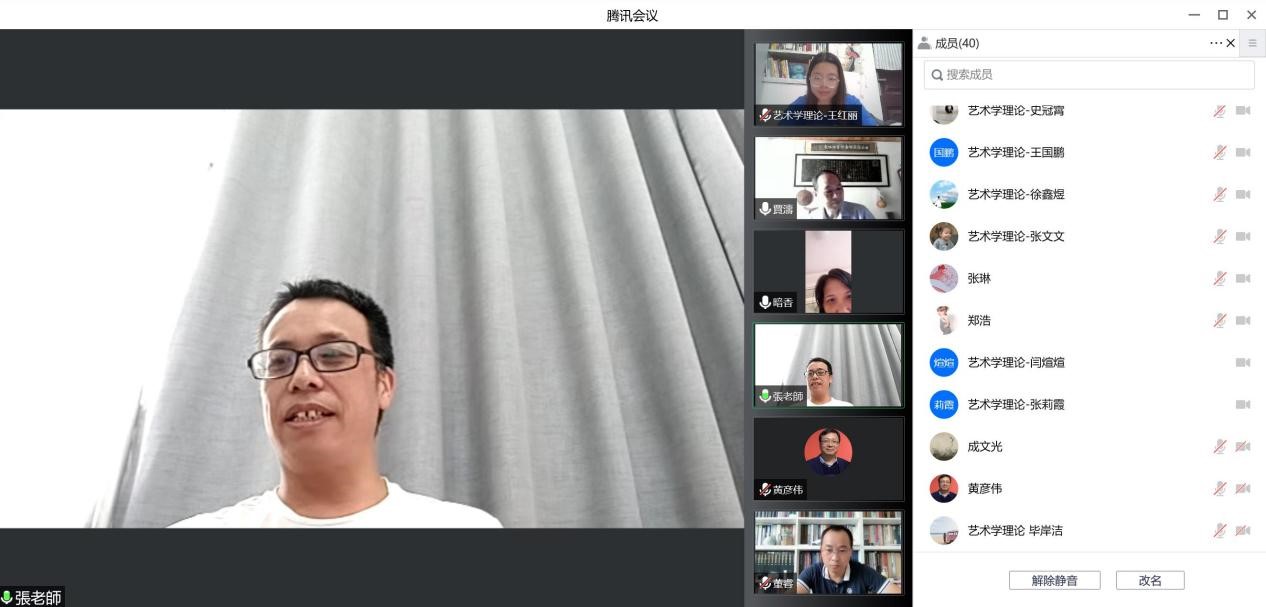 2022年9月8日下午3时,必赢bwin官方网站线上召开艺术学理论、美术学专业师生见面会。必赢bwin官方网站副经理王圣松教授、艺术学理论学科带头人贾涛教授、美术学学科带头人张自然教授,以及各学科专业方向研究生导师、2022级研究生辅导员、全体艺术学理论、美术学专业研究生新生参加会议。会议由学院副经理王圣松教授主持。 贾涛教授首先对2022级的研究生表示热烈地欢迎,随后对艺术学理论学科导师概况进行了介绍,并提醒同学们在选择导师之前,要充分了解导师的学术情况,与自身的兴趣和发展方向结合起来进行谨慎选择;要合理调节两个选导志愿,避免扎堆或者空选。贾涛教授还表示作为一名合格的研究生,思想觉悟要有一定的水准和高度,要有集体荣誉感,谨言慎行,要对专业、学科、乃至学院学校负责;要学会控制自己的言行举止,谨记学习是为了提高思想和修养;在学习的时候,要心无旁骛专心做学问;要带着问题去学,有所准备,对自我有要求、有预案。 张自然教授对2022级研究生的到来表示热烈欢迎,并提醒同学们:本科阶段是学习和掌握基本知识,而研究生阶段则需要探索新领域、创造新知识,学习任务相较本科生更加艰巨;许多知识领域无人涉猎,只待同学们去发现和创造。学习的过程无论是一帆风顺还是遍布荆棘,都要具有积极的心态,遇到困难要勇敢的迎难而上。张自然教授还对美术学学科及导师概况进行了介绍,并表示:我们拥有优秀的导师团队、雄厚的团队力量,将为同学们的学习和研究“保驾护航”;希望同学们通过三年研究生阶段的学习,实现自我突破。 线上参会的导师也一一与同学们进行了简单的交流,表达了对同学们的欢迎与期许。 贾涛教授最后总结道:考研不易,读研压力更大,怎样充分利用这三年的时间?是我们需要思考的问题;须知,遵守学习纪律是顺利完成学业的重要保证;只要刻苦努力,愿意付出,就能收获好的结果。“以终为始,不忘初心!”各位导师将会和同学们齐心协力,培养出合格的硕士研究生。