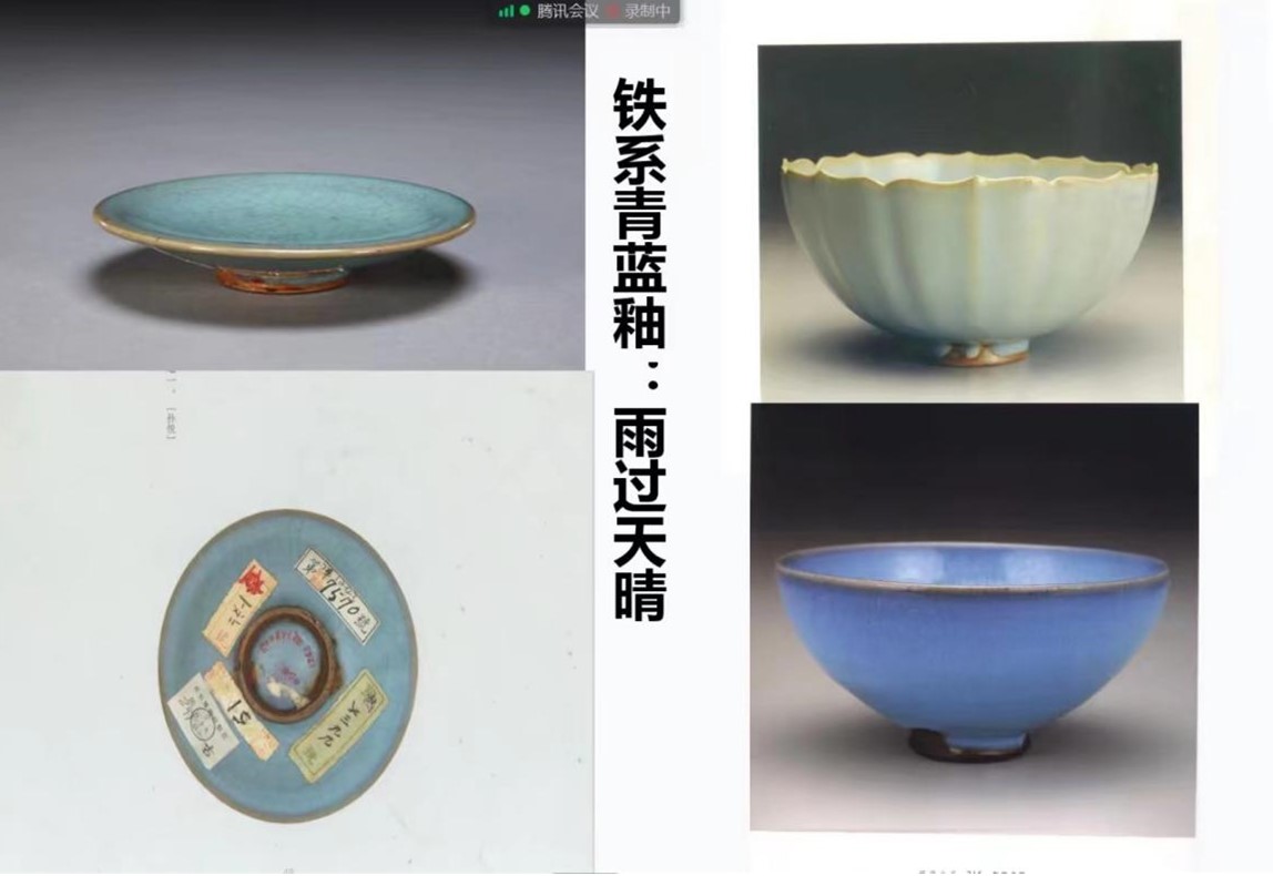 早期钧瓷铁系青蓝釉时期——雨过天晴。王洪伟老师图文并茂地阐释了钧瓷釉色以天青色、天蓝色、月白色为代表,追求“雨过天晴” 般清淡舍蓄的美学特质,在钧瓷铜红釉发明后,开辟了多彩多姿的中国瓷器美学新空间。