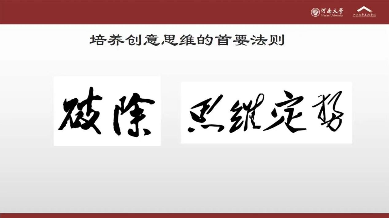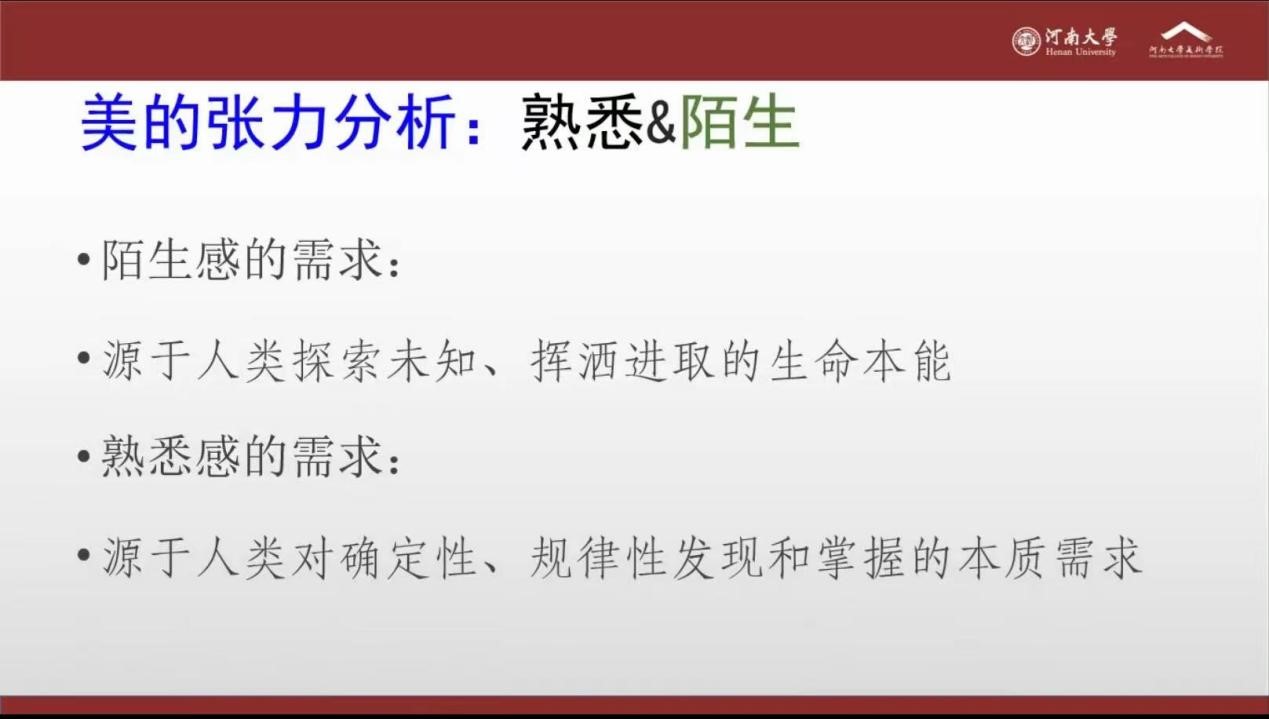 杨宏鹏引用“汉斯克论艺术想象力与审美感受力”,进一步分析出艺术和美的密切关联,创意思维则是二者共同的生发逻辑。“熟悉+陌生”的辩证关系是艺术张力的深层来源、是审美心理的内在机制、是创意思维的运作规律。