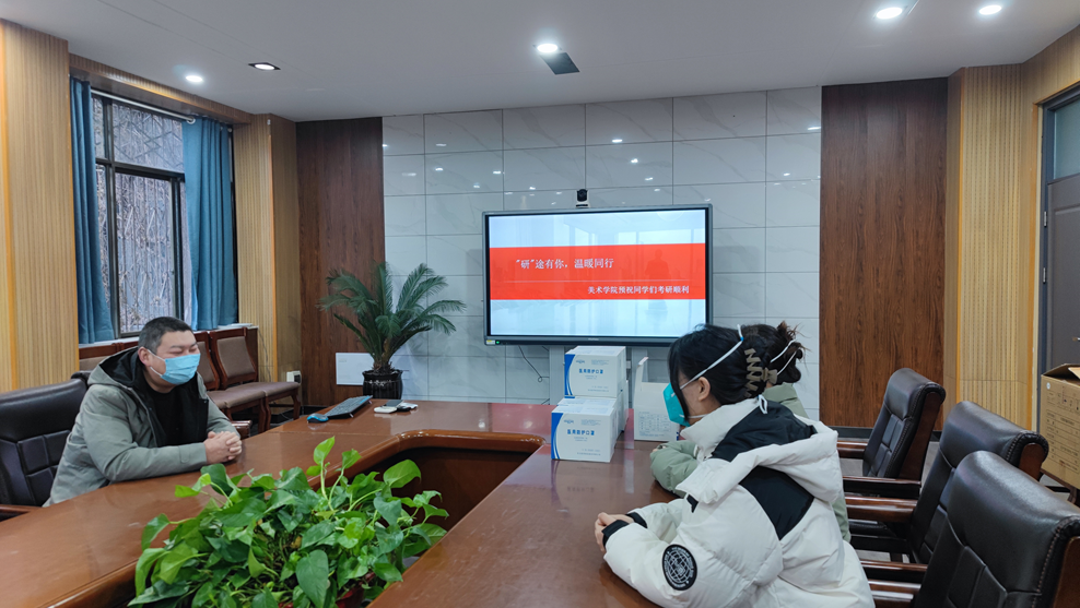 12月21日下午,必赢bwin官方网站2019级辅导员邢涵在一楼会议室亲切慰问2019级考研员工代表,为他们送去鼓励和祝福以及防疫物资。
