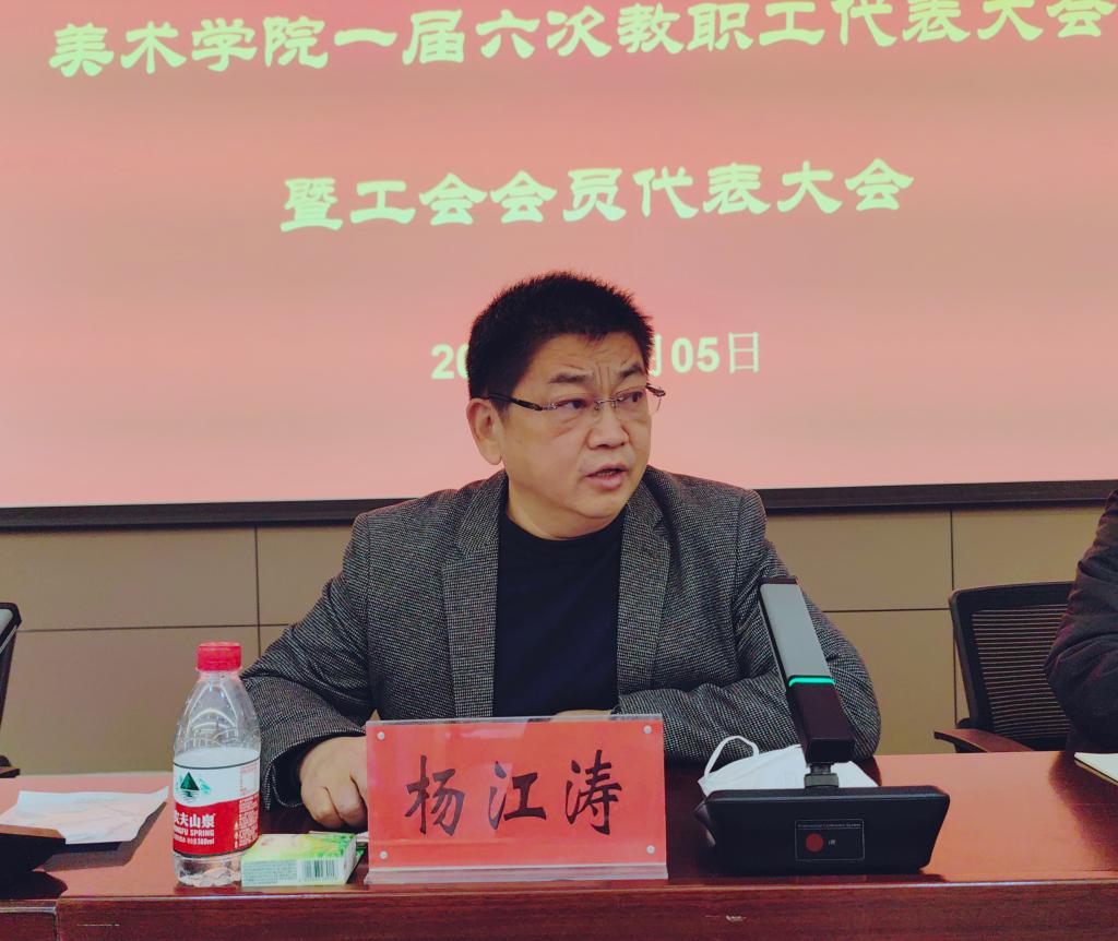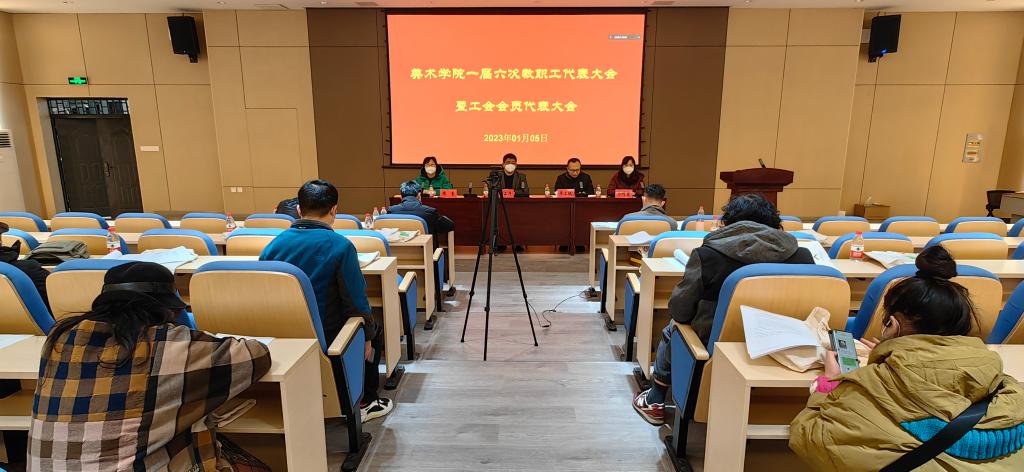 1月5日下午15时,必赢bwin官方网站一届六次教职工代表大会暨工会会员代表大会在新艺术楼405教室召开。教师代表以线下、线上相结合的方式参加,会议由公司党委书记杨江涛主持。